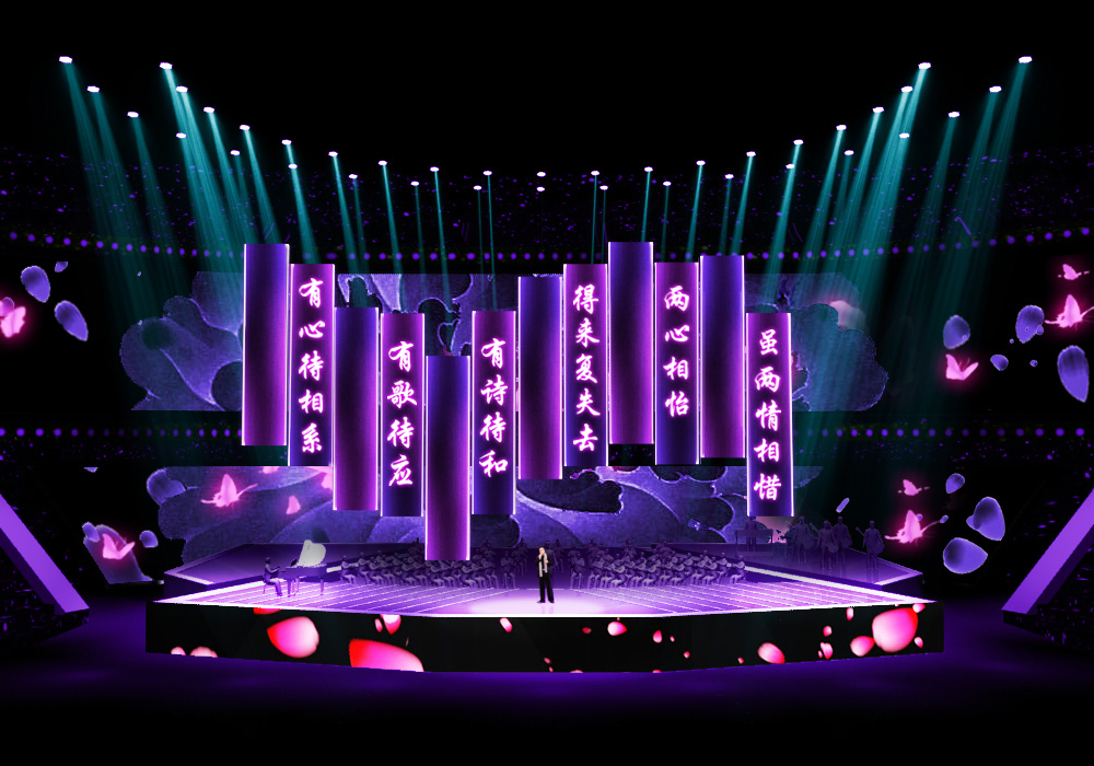 数虎团队用创意为刘欢老师的声音描摹画面,让音乐的展示更加全方位。在舞台表现手段上,演唱会以巨大LED屏、12块吊屏、纱幕等呈现舞美影像,衬托歌曲意境。