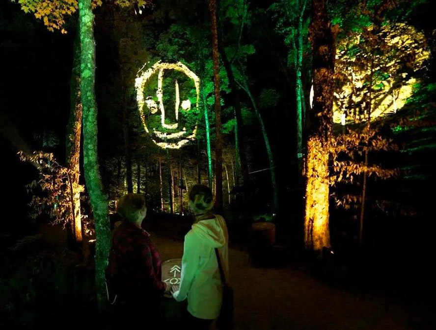通过植物投影、全息投影等多媒体视觉艺术,让茂密的森林变成充满无限未知的王国,游客在这里体验一场身临其境的魔幻旅行。