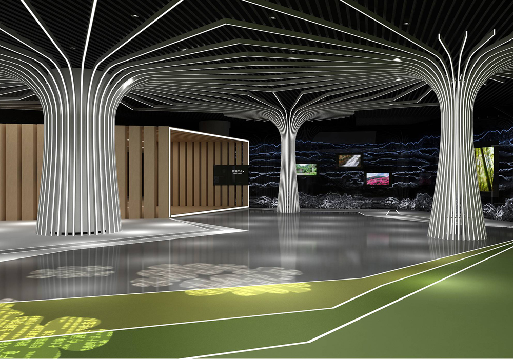 无人值守城市名片——立体视听展现井冈山发展历程。折叠造型的城市名片通道,自动触发的定向声场娓娓道来一个个真实的故事,把党对国家建设的贡献汇成美妙的井冈画卷浮现眼前。