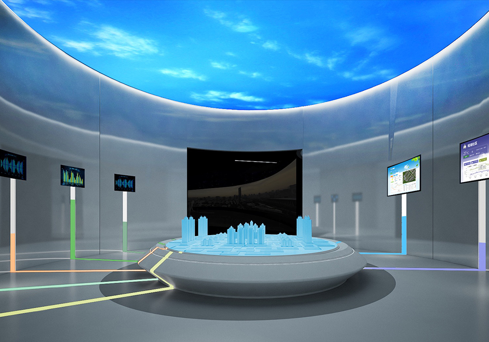 智慧银川城市展厅,通过综合运用多媒体数字内容及270度全息成像、3D沉浸系统、可升降数字沙盘、VR/AR互动体验、多通道视频控制系统、触控一体机互动设计、展厅中控系统等多媒体展项设计,以互动+科技展示智慧银川。