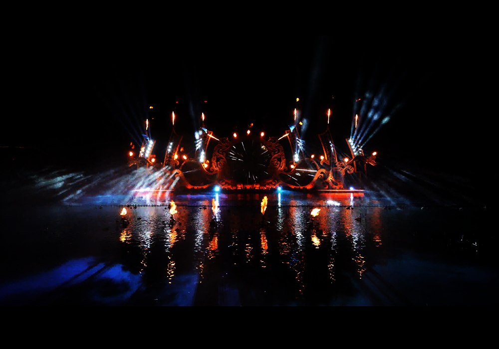 整场演出以四幕结构展开,将湖面本身变为“水上史诗剧场”。水、光、影、乐多维融合,既有远观的壮阔,也有近看的细腻。